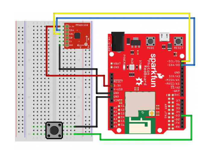 Here's a wiring diagram showing a possible way to connect the accelerometer (ignore the wiring for the push button):