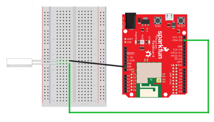 Here are the steps to connect the magnetic switch to your Photon using the breadboard: