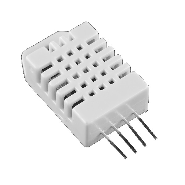 The RHT03 humidity and temperature sensor has 4 metal legs. The front side of the sensor has openings to allow air in.