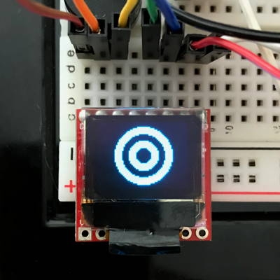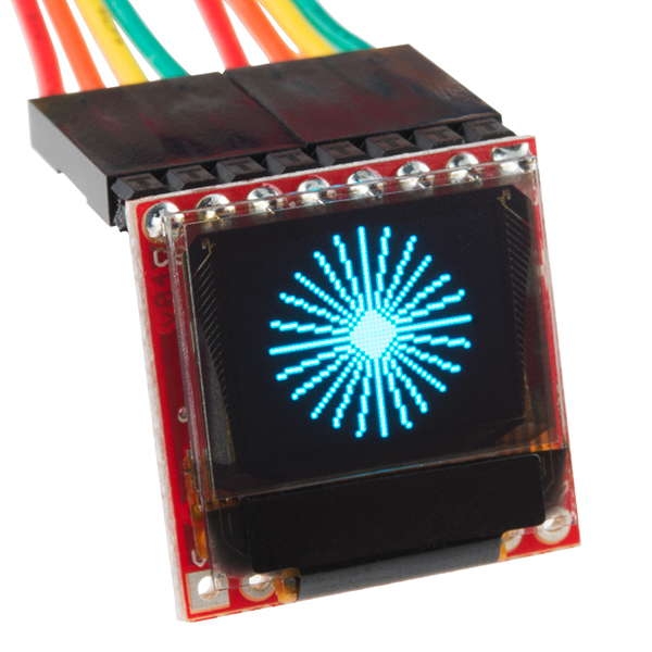The Micro OLED display included in your Photon kit is a monochrome (single-color) screen that is 64 pixels in width and 48 pixels in height. It can be used to display text, simple graphics, or a combination. You can even create simple animations by drawing an object, leaving it on the screen briefly, erasing it, and repeating these steps with the object drawn at a new position on the screen.