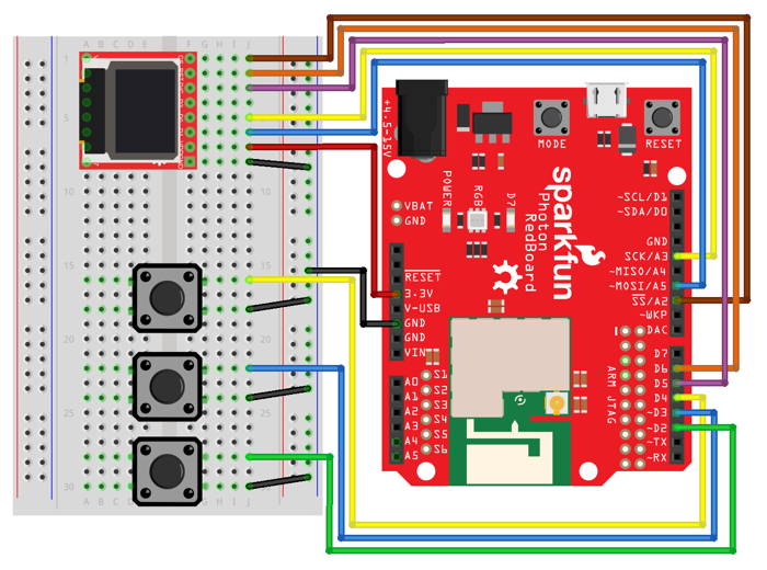 Here are the steps to connect the Micro OLED to your Photon using the breadboard: