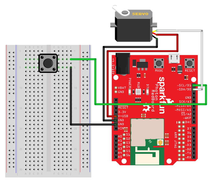 Here are the steps to connect the servo motor to your Photon using the breadboard: