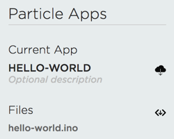 In this case, the zip file will be named hello-world.zip. You'll need to uncompress the zip file to get your app source code file, which will be named hello-word.ino. If necessary, this .ino file can be opened in a text editor on your computer.