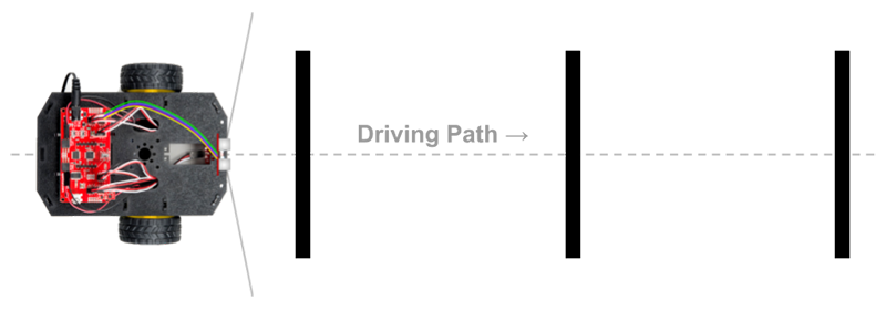 The robot's goal when avoiding a line is to check for a line as the robot drives and turn away when a line is detected. To do this, the robot can just check the left and right IR line sensors (rather than all three).