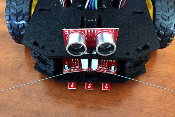 NEW ROBOT: If you need to assemble a new SparkFun RedBot kit, follow the instructions in the SparkFun Assembly Guide for RedBot. If your teacher added an ultrasonic sensor to your kit, follow these instructions to connect the ultrasonic sensor to your assembled robot.