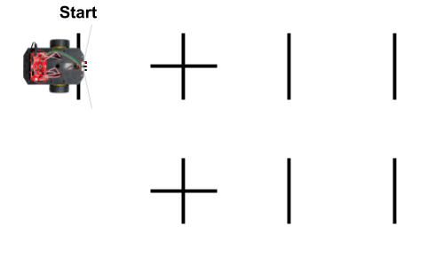 The advantage of counting line markers while driving straight is that you can map out the robot's path by simply marking each point where the robot might stop or turn — without needing to create a continuous line to follow. You can also create complex patterns with intersecting paths.