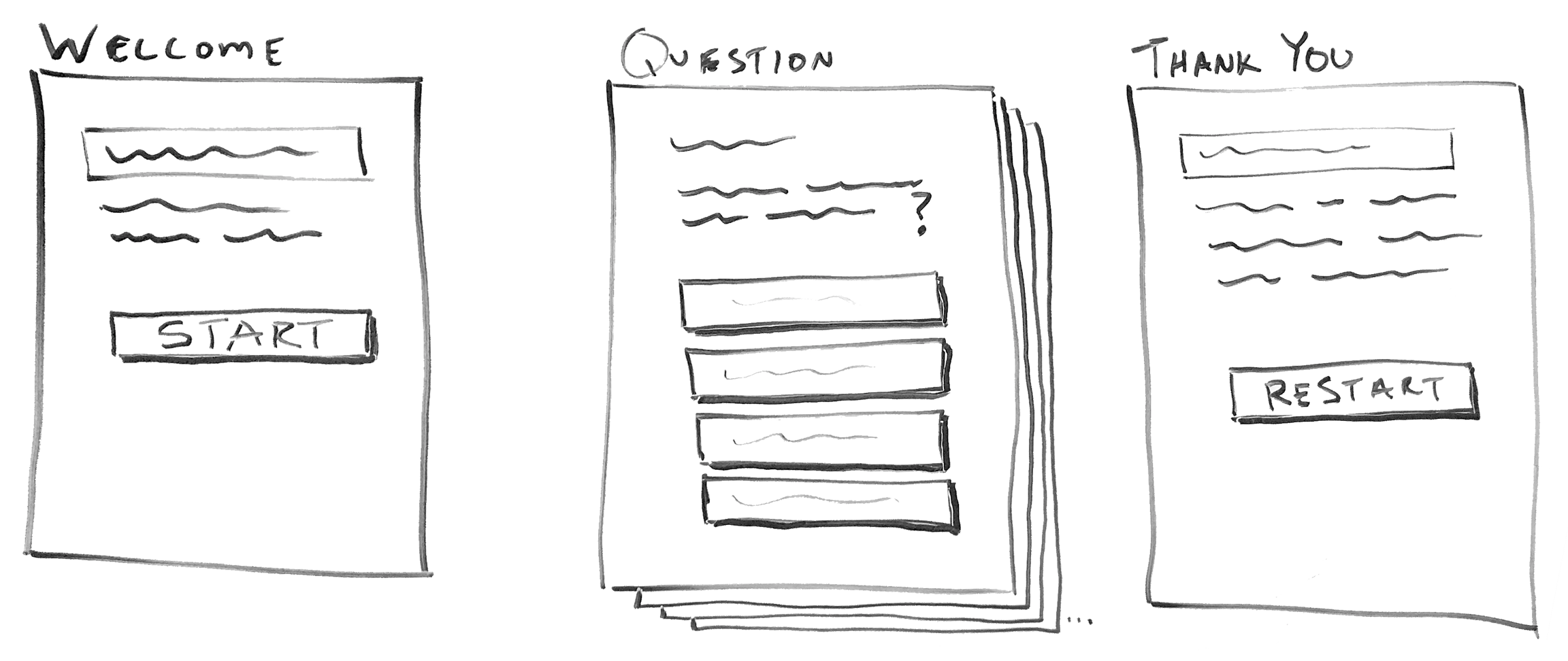 Question Screen The question screen is the most important screen. In that it not only presents the trivia questions to the visitor, but also will display feedback on correct and incorrect answers. The question screen can also include running data; like a score, progress, or timer.