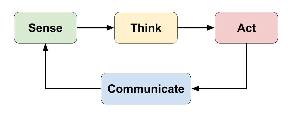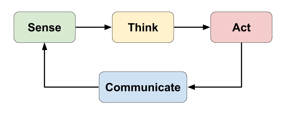 Similar to robotic devices, IoT devices follow a "sense-think-act" cycle to interact with the physical world. IoT devices also "communicate" through an internet or network connection.