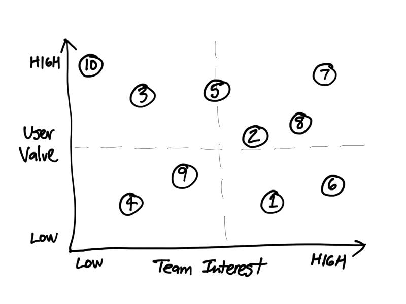 Use the decision matrix to select one idea to pursue for your team’s project. Ideally, your selected idea will have high user value and high team interest.